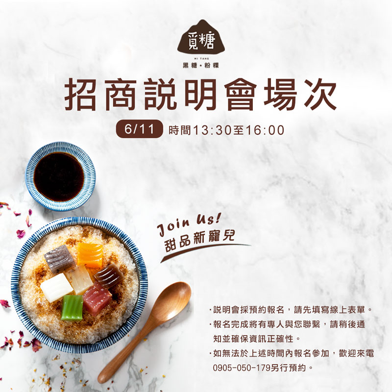 《覓糖》加盟說明會 06/11(六) 開跑囉!!立即品嚐新玩味時尚:https://forms.gle/ozQ79aKQ3CfPf2cm7